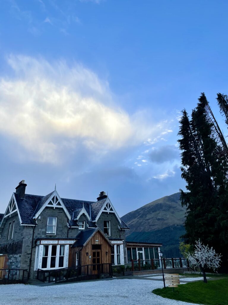 For our stay in the Fort William area, we chose the Whispering Pine Lodge, which I became enamored with after looking at photos online. The view over Loch Lochy did NOT disappoint. It was our most scenic hotel room, by far. The lodge was charming, cozy, and had a lovely restaurant overlooking the Loch.