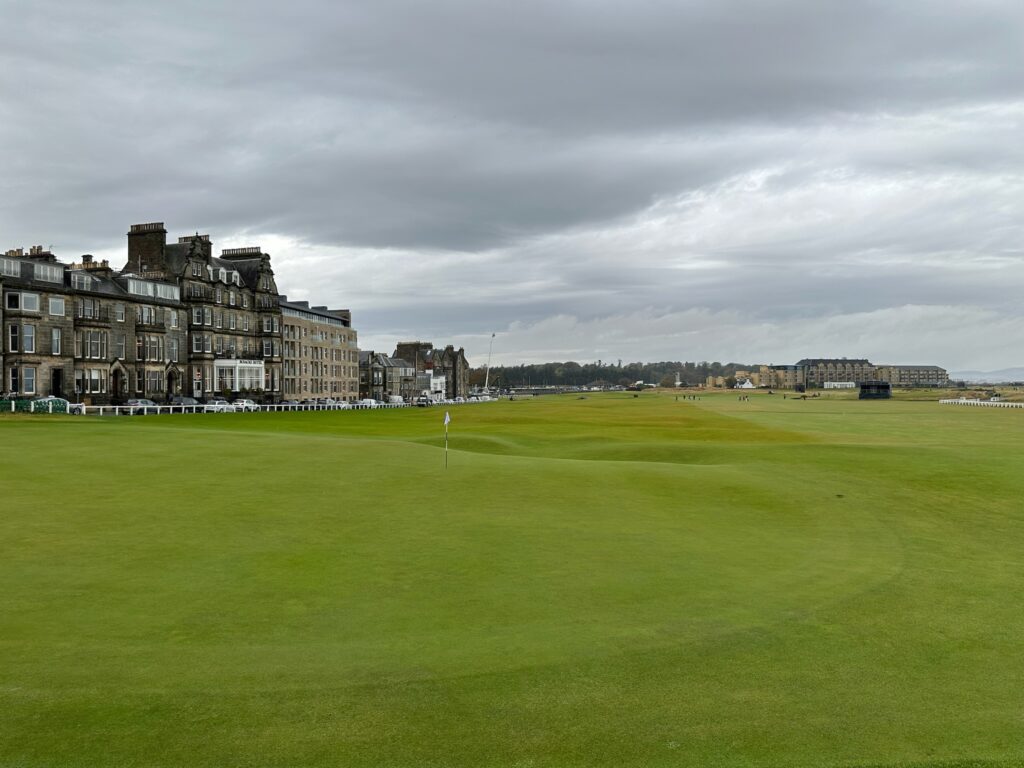 As an avid golfer, Saint Andrews was a “must” for my husband. So, we made time to stop on our drive back to Edinburgh. The weather was extremely dreary, but the town was very picturesque with sweeping views of the water. We took a few obligatory photos of the golf course and then stopped by the pro shop so my husband could pick up some highly-coveted golf memorabilia.